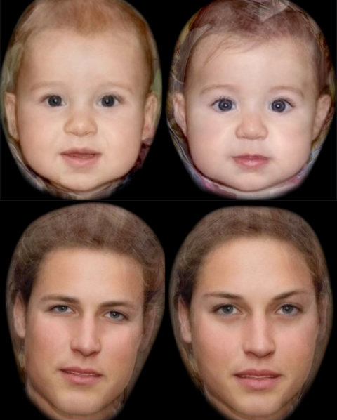 Os pesquisadores da Universidade, extraíram 200 pontos do rosto de Kate para construir uma espécie de irmão gêmeo dela. Misturaram o resultado com os traços de Willian para formarem o rosto de um menino. E depois, fizeram o contrário para projetarem o rosto de uma menina. Eles notaram que alguns detalhes devem prevalecer, como as sobrancelhas arqueadas de Kate e o queixo de Will.